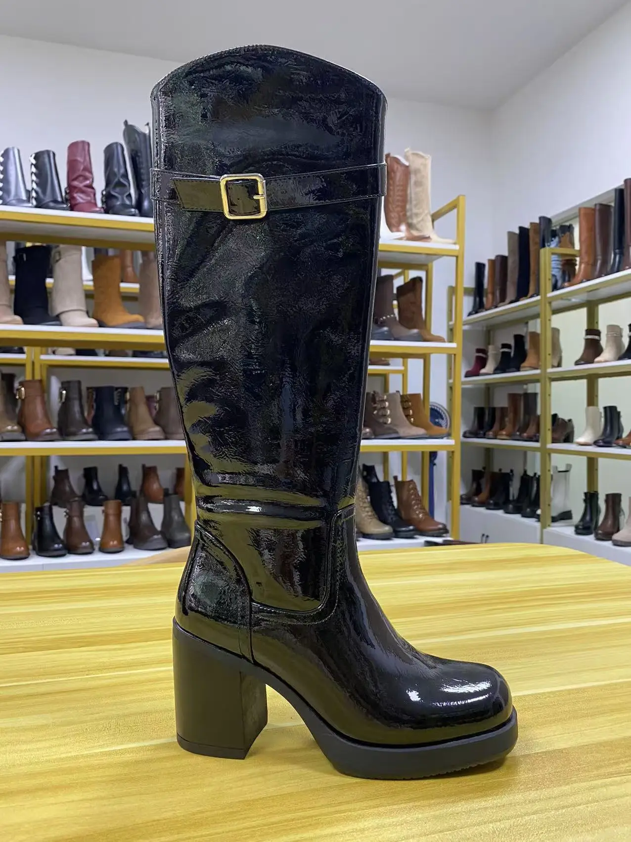 秋冬高品质女式时尚及膝高跟靴子柔软舒适防滑封口 - Huihong Footwear